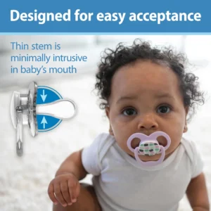 Designed with baby’s acceptance in mind. The Advantage Pacifier is a fully symmetrical soother, with a reversible bulb that can be placed in baby’s mouth in either direction.