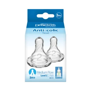 Dr. Brown’s Natural Flow Narrow Baby Bottle Silicone Level 2 Nipple, 2-Pack)